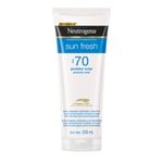 O Protetor Solar Neutrogena Sun Fresh FPS 70 protege sua pele contra os efeitos do sol ao mesmo tempo que a mantém super hidratada. Com fórmula leve e antioxidante, ele traz a tecnologia Helioplex® XP, que garante a alta proteção contra os raios UVA/UVB. Além disso, oferece outros benefícios como alto poder de hidratação e textura oil free, que mantém a pele sempre sequinha. Este produto é indicado para todos os tipos de pele, até as mais sensíveis.