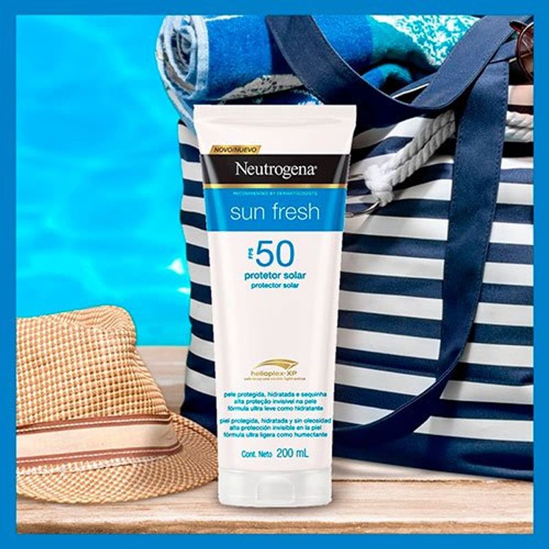 O Protetor Solar Neutrogena Sun Fresh FPS 50 protege sua pele contra os efeitos do sol ao mesmo tempo que a mantém super hidratada. Com fórmula leve e antioxidante, ele traz a tecnologia Helioplex® XP, que garante a alta proteção contra os raios UVA/UVB. Além disso, oferece outros benefícios como alto poder de hidratação e textura oil free, que mantém a pele sempre sequinha. Este produto é indicado para todos os tipos de pele, até as mais sensíveis.