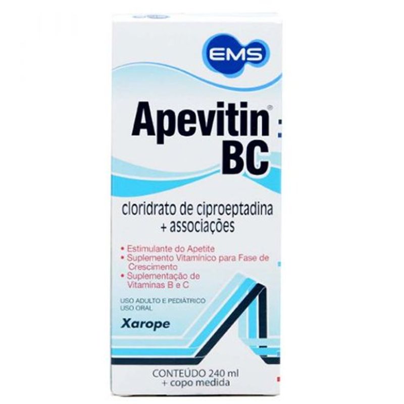 Apevitin BC Xarope 240 mL – EMS é indicado na complementação das vitaminas do complexo B e vitamina C, especialmente em casos de deficiência nutricional, fadiga, recuperação pós-doenças e necessidade de suporte metabólico.