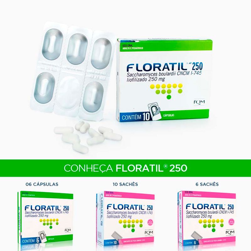 Floratil AT 250mg Caixa Com 10 Cápsulas Saccharomyces Boulardii CNCM I-745 Liofilizado Natulab Referência