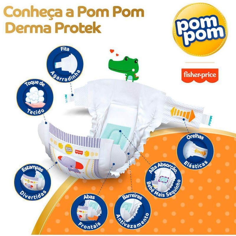 A Fralda Pom Pom Derma Protek combina proteção e cuidado com a pele do bebê. Com a tecnologia Derma Protek, esta fralda contribui de forma delicada na hidratação da pele por meio da presença de uma loção hidratante com extratos naturais em sua composição. O canal super absorvente promove uma absorção 2x mais rápida, garantindo que o bebê fique sequinho por mais tempo. Já a orelha elástica deixa a fralda mais fácil de vestir e tirar, além de oferecer melhor ajuste e mais conforto para o bebê.