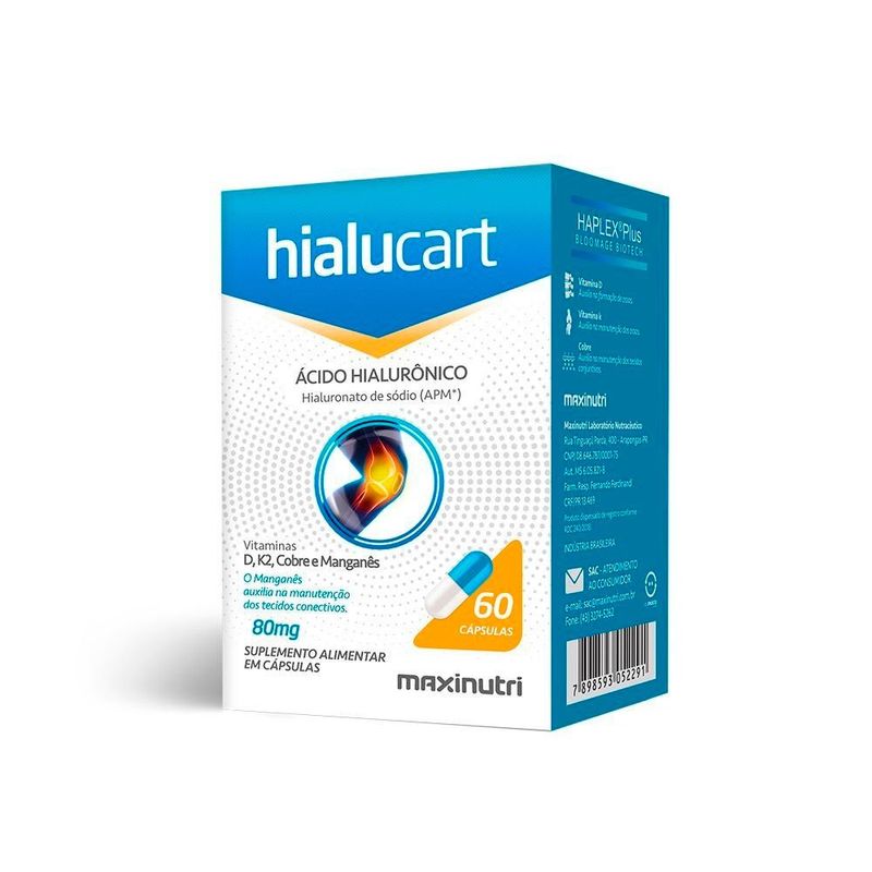 Hialucart é um suplemento alimentar com baixo teor calórico. Foi desenvolvido com vitaminas D e K2. Conta com adição dos minerais manganês e cobre. Sua apresentação em cápsula contribui para facilitar a ingestão do produto.
