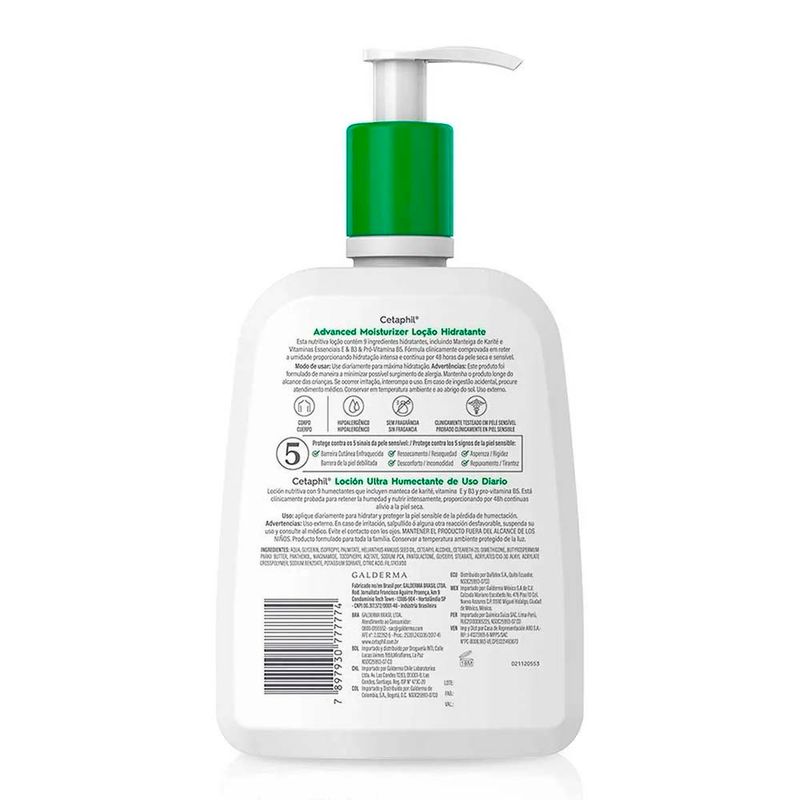 A Loção Advanced Cetaphil foi especialmente reformulada para proporcionar hidratação intensa e contínua por até 48 horas. Enriquecida com 9 hidratantes, incluindo manteiga de karité, sua fórmula avançada contém niacinamida (vitamina B3), pantenol (pró-vitamina B5) e glicerina, que ajudam a melhorar a resistência da pele sensível.