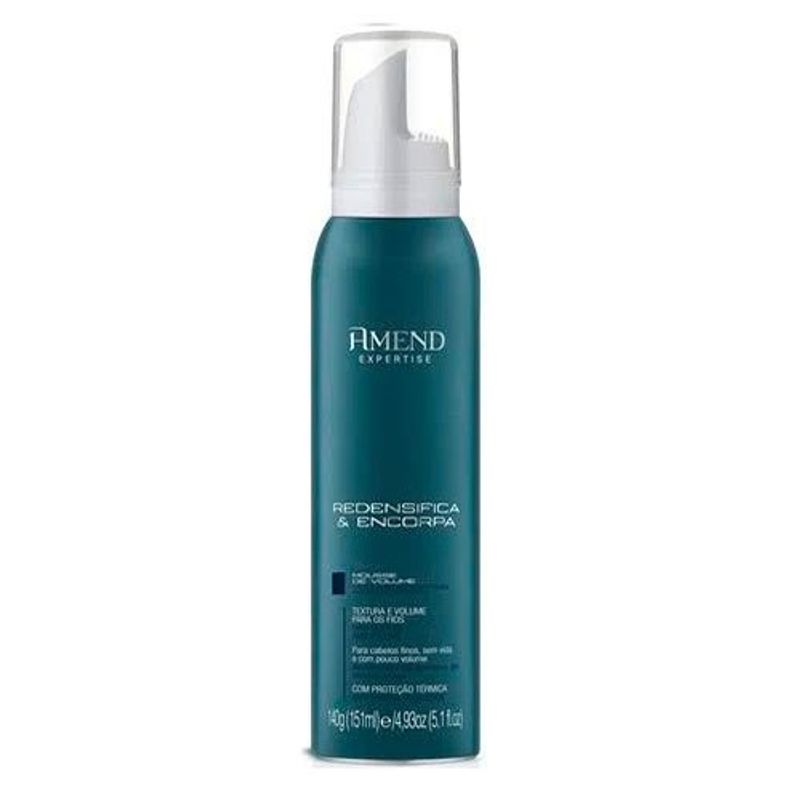 Mousse para cabelos finos, sem vida e com pouco volume. Amend Expertise Redensifica & Encorpa envolve os fios, dando volume e corpo da raiz às pontas. Mousse Amend Expertise Redensifica & Encorpa traz a exclusiva tecnologia Interaction 3D, que aumenta a força, a elasticidade e a resistência dos fios, deixando-os volumosos, encorpados, brilhantes e com movimento. Conta com proteção térmica.