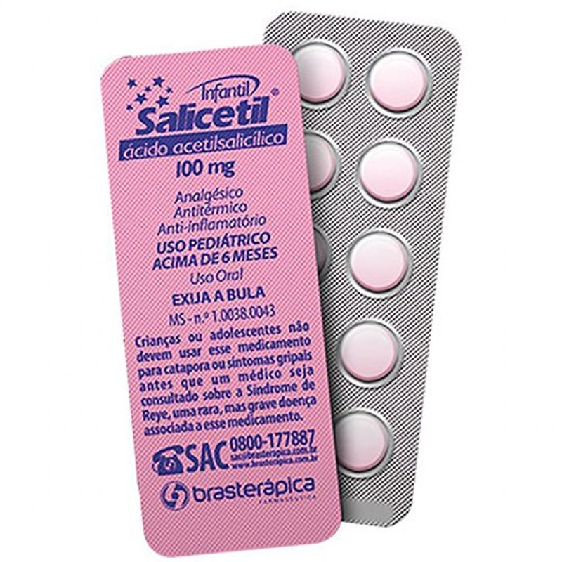 Salicetil 100mg Cartela 10 Comprimidos Ácido Acetilsalicílico Brasterápica Similar